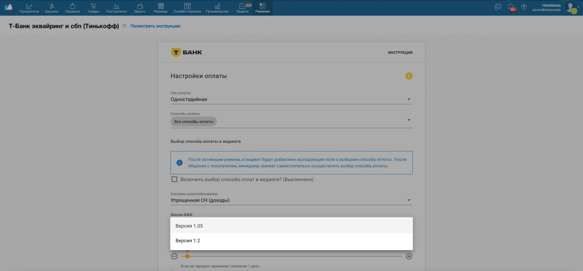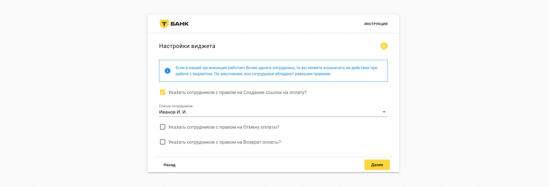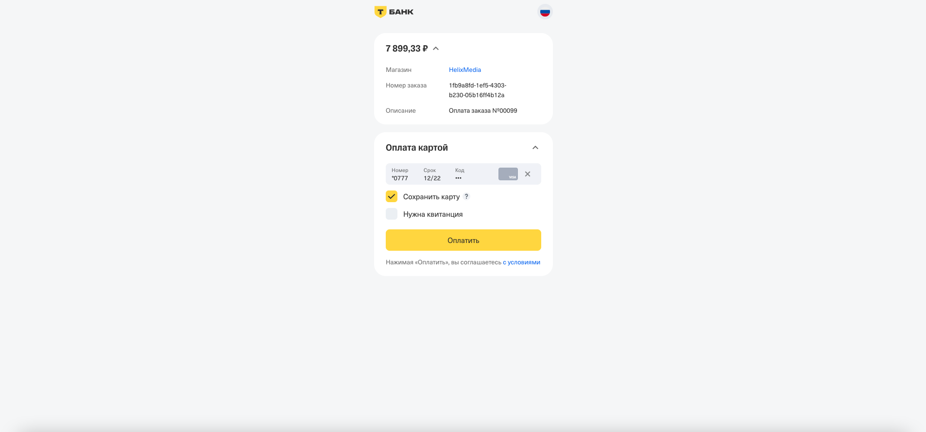 Примечание: на этапе тестирования выбор способа оплаты в виджете недоступен.